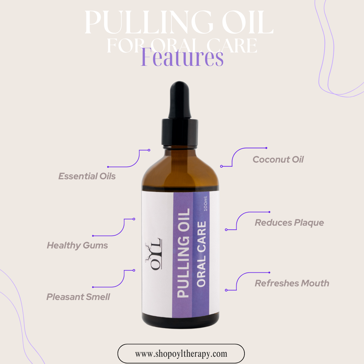 Enhance your oral health with OYL Therapy's Pulling Oil, an effective blend of essential oils with Coconut and Sesame Oils. This all natural formula supports gum health, removes toxins, freshens breath and promotes overall oral hygiene. Regular use helps reduce plaque buildup to strengthen teeth. With regular use of Pulling Oil maintain a healthy and refreshed oral health for a brighter smile.